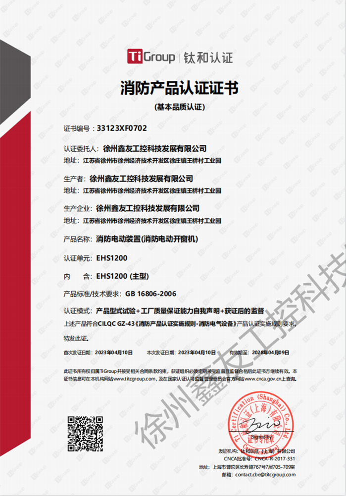徐州鑫友工控科技發(fā)展有限公司成立于2008年,占地31600平方米,全資子公司:江蘇良紫工程科技有限公司,旗下 有“鑫友”及“MASTER.W主人窗控”兩個(gè)品牌系列,公司全面貫徹執(zhí)行IS09001:2015質(zhì)量管理體系標(biāo)準(zhǔn),產(chǎn)品順利通過(guò)歐盟CE認(rèn)證和中國(guó)***消防電子產(chǎn)品認(rèn)證,通過(guò)可燃性粉塵環(huán)境下、爆炸性環(huán)境下防爆合格產(chǎn)品檢驗(yàn)。排煙天窗整窗通過(guò)***消防產(chǎn)品質(zhì)量監(jiān)督檢驗(yàn)中心檢測(cè)。先后獲得多項(xiàng)******及榮譽(yù)證書(shū)。集研發(fā)、加工、生產(chǎn)、制造、銷售、安裝及售后于一體,是一家高起點(diǎn)、研發(fā)能力強(qiáng)的專業(yè)智能化***技術(shù)企業(yè)。
